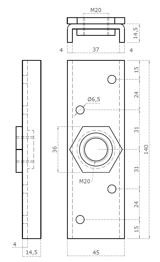 Lišta pre uchytenie vozíka C750G, C752G, lisovaná otočná matica, závit M20