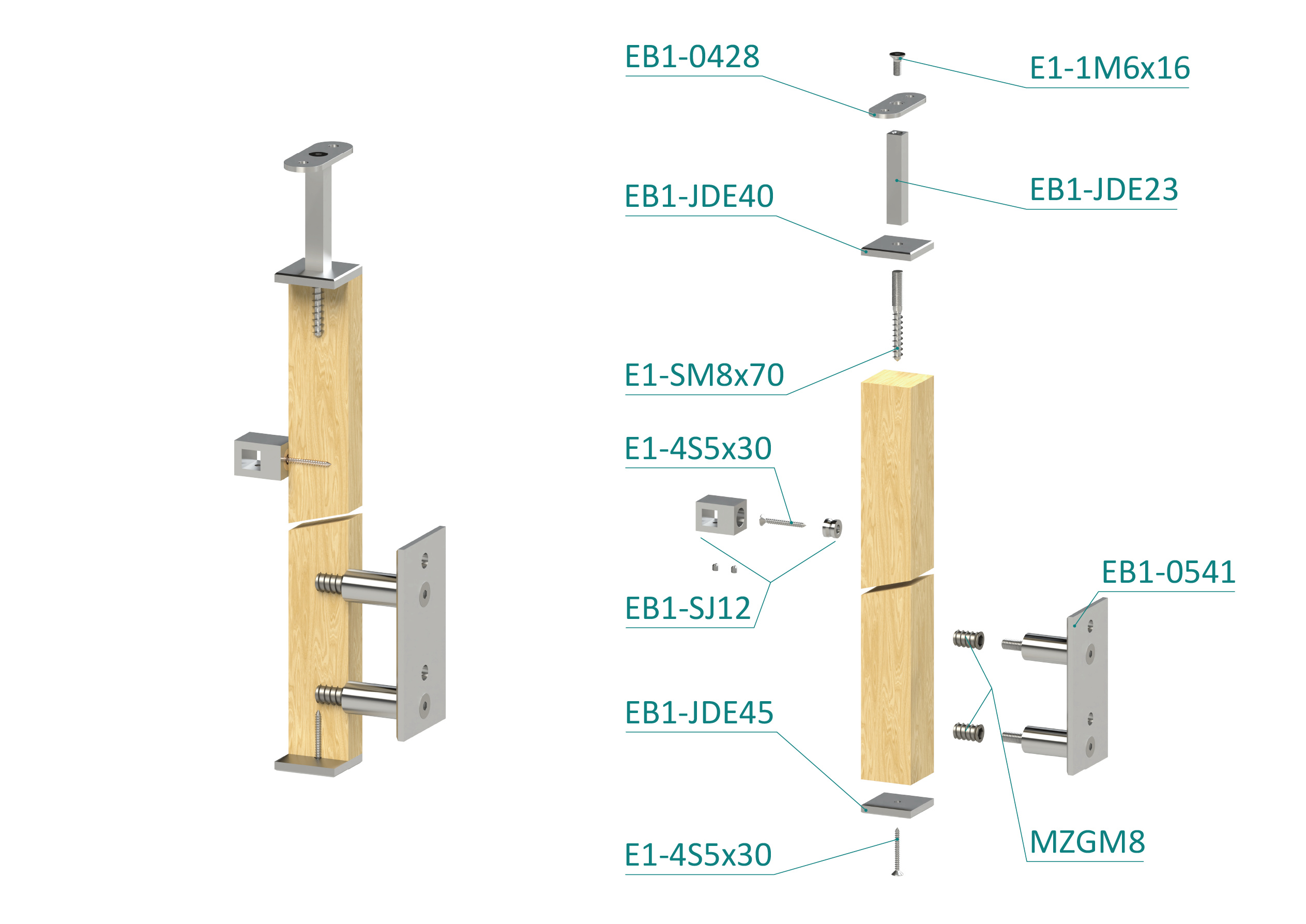 Drevený stĺp, bočné kotvenie, 4-radový, priechodný, vonkajší